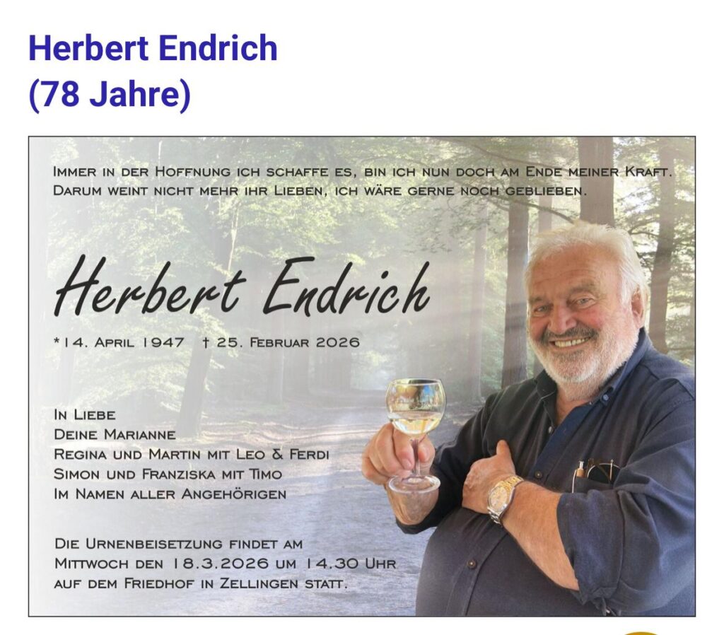 Der FSV Zellingen trauert um sein langjähriges Mitglied Herbert Endrich. Herbert war mit seinem Know-How als Architekt maßgeblich am Bau unseres Vereinsheims beteiligt.
